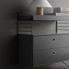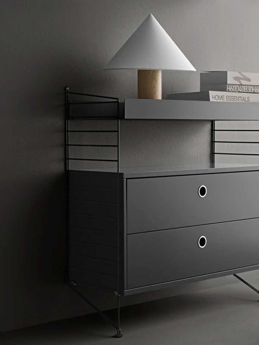 Gólf uppistöður frá String gefa hillueiningunni léttara