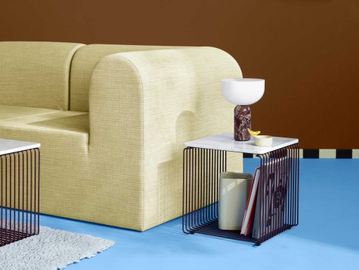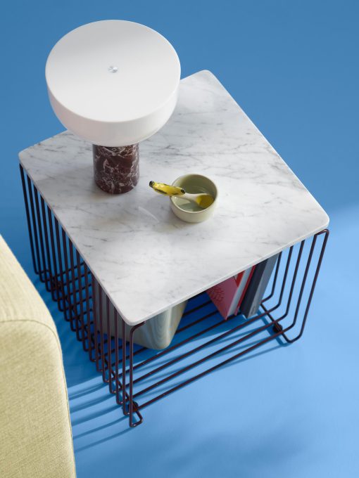 Add the single top panel to the smaller Panton Wire unit and create a surface to use the shelf as a table. This size is, for example, perfect as a bedside table or side table by the sofa – standing on the floor or hanging on the wall.