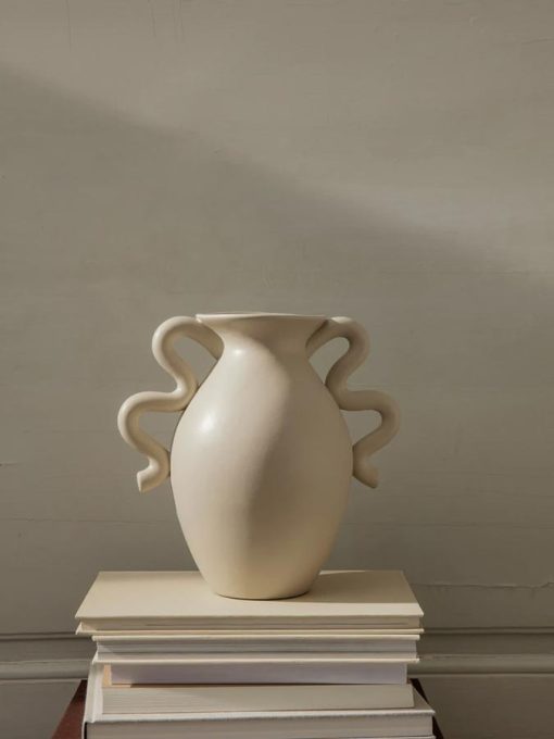 Recalling classic shapes from traditional pottery, the Verso Table Vase has an irregular, feminine form with a pair of distinct, artfully curved handles that add a modern twist to the otherwise timeless expression. Fill the vase with your favourite flora or let it make a beautiful statement all on its own.