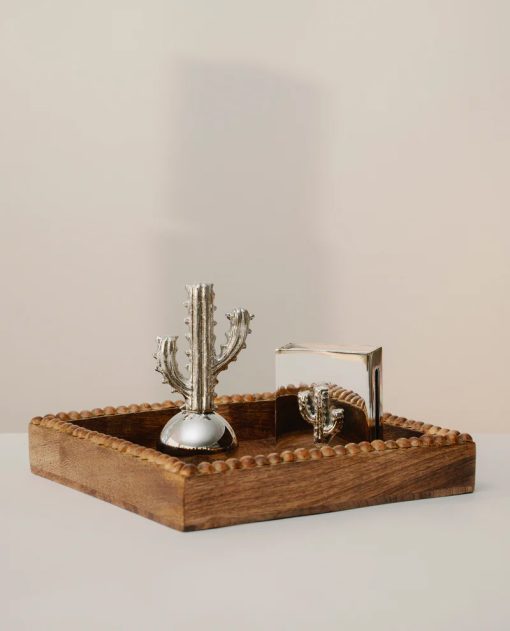 a rosary, giving the tray a calm and timeless presence. A simple