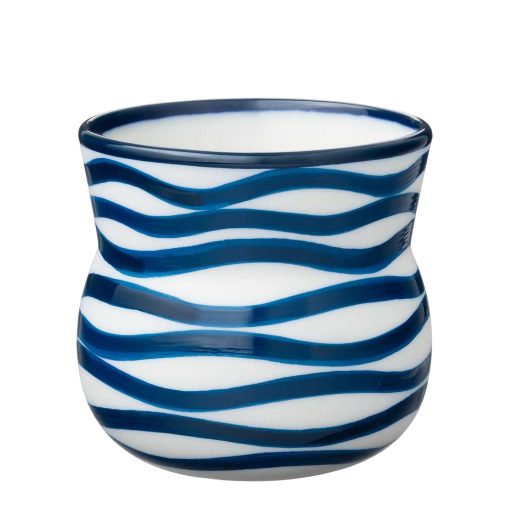 Veltibollinn með mynstrinu Bylgja er mótaður úr hágæða postulíni og er mynstur bollans handmálað í hinum mest einkennandi og klassíska bláa lit Ingu Elínar.