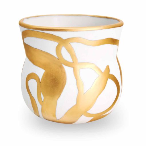 Handgerður Veltibolli úr postulíni, málaður með þykkri 24 karata gyllingu og þolir því ekki uppþvottavélar og örbylgjuofna.