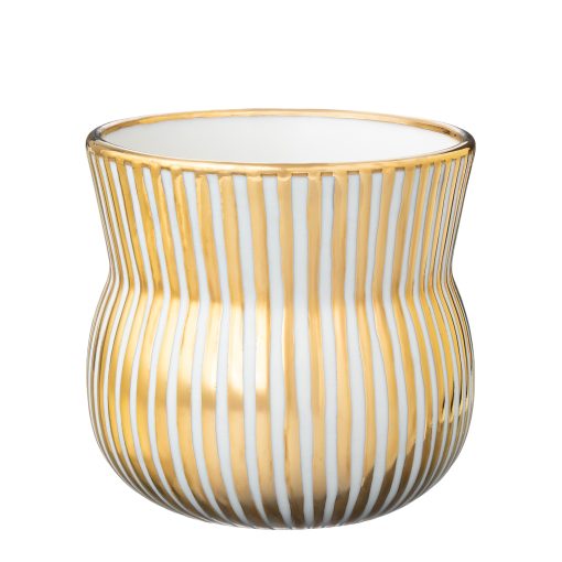 Handgerður Veltibolli úr postulíni, málaður með þykkri 24 karata gyllingu og þolir því ekki uppþvottavélar og örbylgjuofna.