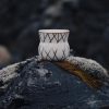 The Oval Cup is made of porcelain and by hand so no two cups are the same. They come in a variety of decorations and are being used for multiple purposes but mostly as cocktail or coffee cups. Their durable design keeps the beverage’s temperature more stable so the cold drinks stay colder, and hot drinks stay hotter, for a longer duration.