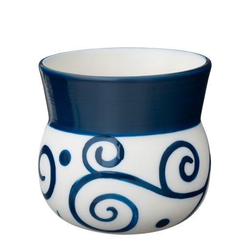 Veltibollinn er mótaður úr hágæða postulíni og er mynstur bollans handmálað í hinum mest einkennandi og klassíska bláa lit Ingu Elínar.