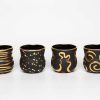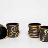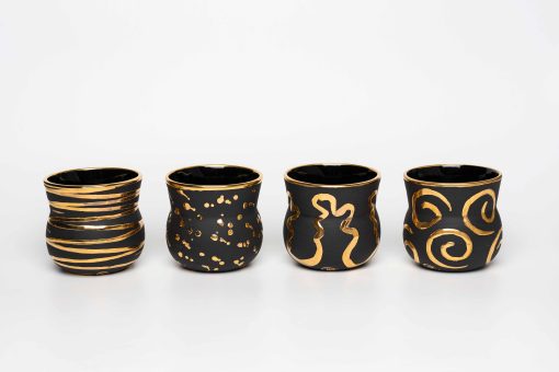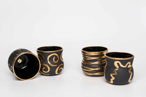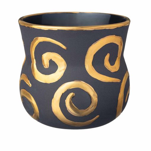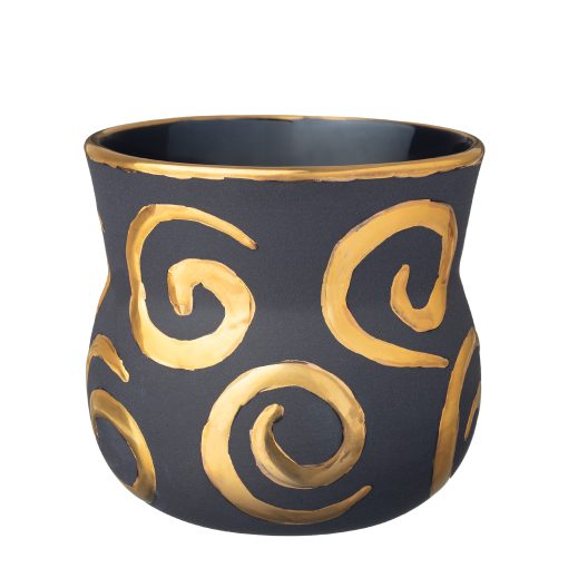 Handgerður Veltibolli úr svörtu postulíni, málaður með þykkri 24 karata gyllingu og þolir því ekki uppþvottavélar og örbylgjuofna.