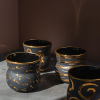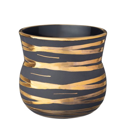 Handgerður Veltibolli úr svörtu postulíni, málaður með þykkri 24 karata gyllingu og þolir því ekki uppþvottavélar og örbylgjuofna.