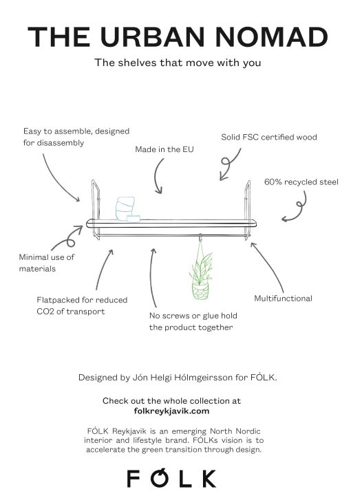 hannaðar af Jóni Helga Hólmgeirssyni vöruhönnuði. Við hönnun hillanna var