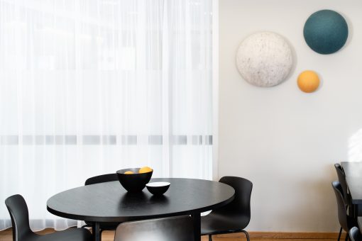 Kúla Monochrome hljóðdempun kemur í nokkrum stærðum frá 20 cm – 100 cm á þvermáli. Kúla er hægt að hengja upp á vegg og loft og þær sem eru undir 50 cm er einnig hægt að hengja uppá gler. Verið velkomin í Skeifuna 6 til að skoða.