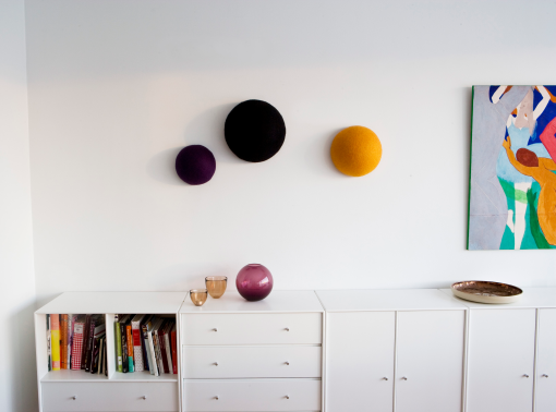 Monochrome Kula can be easily hung on walls and ceilings. Smaller Kula (max 500mm of diameter) can be stuck on glass with a suction cup.