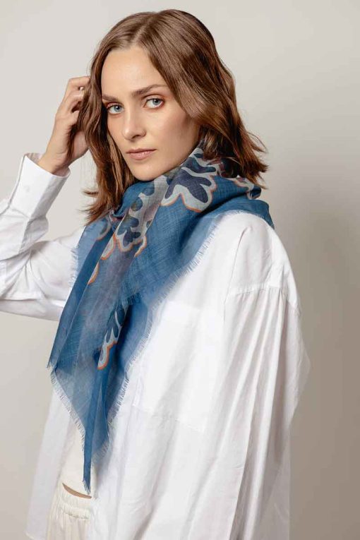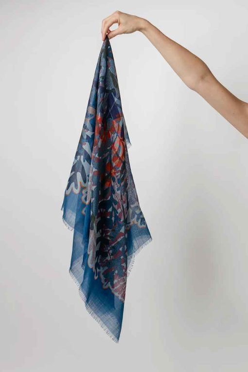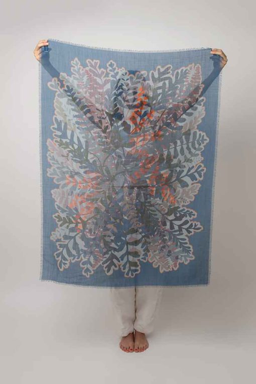 Large scarf from very soft Italian wool. Fringed edges. Digital print based on ink drawings of plants found in the Icelandic flora.