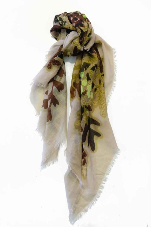 Large scarf from very soft wool. Fringed edges. Digital print based on ink drawings of plants found in the Icelandic flora.