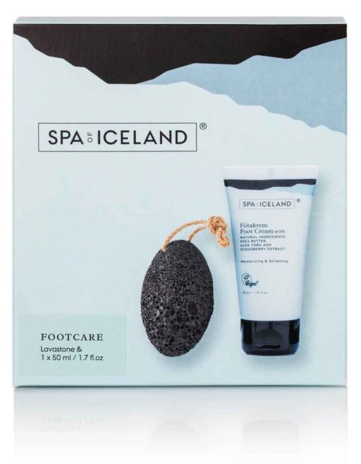 Fallegt gjafasett frá SPA of Iceland sem inniheldur fótakrem og vikurstein.