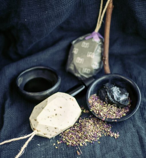 Steinasápurnar frá URÐ eru handgerðar og innihalda íslensk hráefni. Lögun þeirra minnir á brotna hrafntinnu og er táknræn fyrir hina viðkvæmu íslensku náttúru. Hrafntinnan er friðuð og stundum nefnd steinn sannleikans.  Sápurnar eru í taupokum sem hægt er að nota ef ferðast á með þær. Sápurnar eru með áföstum spotta til að aupvelda notkun. Sápurnar hafa hver sína sérstöku virkni.