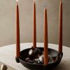 The Bowl Candle Holder is at once a decorative and multifunctional piece. Its unglazed, grainy ceramic contributes to a raw, natural expression. Let the candle holder make a simple yet elegant impression with a set of lighted candles. You can use the centre of the bowl to store your favourite decorative items of the season.