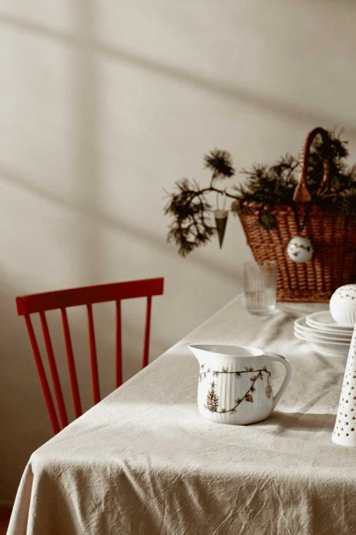 Hammershøi Christmas celebrates Christmas with beautiful and evocative illustrations, which decorate the popular dinner service from Kähler – perfect for an elegant Christmas dinner. The lovely detailed Christmas motifs on this unique sauce boat were created by artist Rikke Jacobsen, whose distinctive designs feature candy cones, angels, walnuts, birds and stars. Use the beautiful sauce boat to spice up all your Christmas get-togethers. Add the matching plates and dishes from Hammershøi Christmas or mix with the classic white Hammershøi plates. And you can also enjoy Rikke Jacobsen’s illustrations on vases, bowls, mugs and Christmas baubles in the Hammershøi Christmas series.