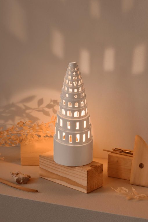The Urbania lighthouse is inspired by traditional Christmas decorations, but creates a cozy atmosphere at all times of the year. With their simple and poetic idiom, they fit beautifully into a modern home. The expression is modern, but at the same time has something safe and recognizable about it. The light houses from Kähler are produced in glossy glazed ceramics and are a modern interpretation of the urban space with an elegant and exclusive expression. Classic ceramics and Nordic design play well together in these lighthouses. Each window is hand-carved, and therefore makes all the light houses from Urbania completely unique. This year, the lighthouse Tall Tower. The shape of the tower grows like a spiral, but varying holes and windows. A tower that symbolizes visibility and overview, as well as gives a beautiful visual expression. Design of R7B.