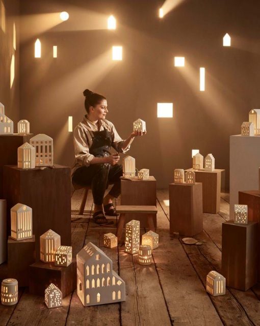 Tivoli’s main entrance was inaugurated in 1890 and built by the architects Richardt Bergmann and Emil Blichfeldt. Bache and Bendix Becker are behind Urbania, a series of small earthenware houses designed as a closed tealight holder. The ceramic lighthouses reflect a modern interpretation of the urban space through an elegant and exclusive expression and are classic ceramics in a beautiful and Nordic design. The lighthouses are characterized by tight silhouettes, which create space for creativity in the design of each individual window, all carved by hand, and unite Kähler’s unique cultural heritage with modern quality ceramics. Tivoli light house measures 18 cm in height and is perfect in the window sill.