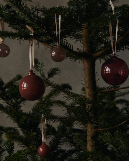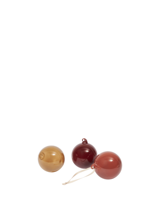 The Glass Baubles welcome the holiday season with subtle charm. These delicate spheres softly catch and reflect light, adding a refined, understated touch to your festive décor. Each set includes a ribbon, allowing you to hang them at just the right height.