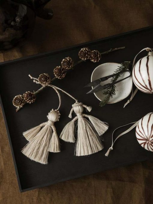 Reimagining traditional Christmas symbols into a new and unexpected form, this sweet pair of angels is handmade from 100% natural jute. With their subtle, natural expression, the angels make a modern yet timeless addition to your Christmas décor. They come in a small, FSC™-certified grass paper bag.