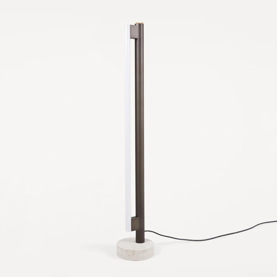 The Eiffel Floor Lamp is a natural evolution of the series designed by Krøyer-Sætter-Læssen, grounding the form with a natural stone base. The softly diffused light is dimmable, ensuring the ambiance is right wherever it’s placed.; by the bedside, in the hallway, or the living room.