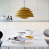 Pendant with direct downward light and layered shades diffusing the light throughout the surroundings. Panton