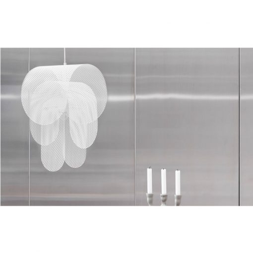 The Superpose lamp shines a soft light outwards and a direct light downwards while its perforated pattern casts lively shadows on its surroundings. Let the lamp stand out above a table, use it as mood lighting in a corner or as an impressive ceiling lamp. Regardless of the context, Superpose continually seduces the viewer with new impressions that do not cease to attract, even when the lamp is switched off.