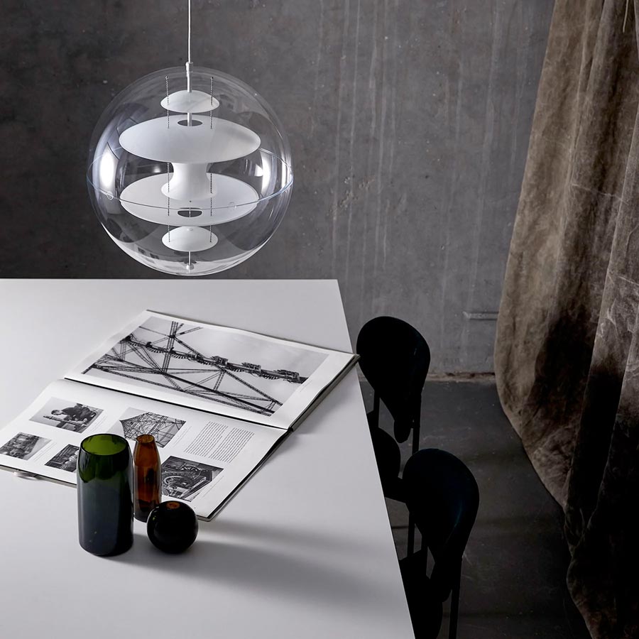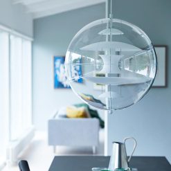 reflectors suspended by three steel chains. With the VP Globe, Panton’s