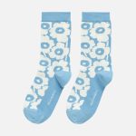 The Linjaus ankle socks are made of a cotton blend, and they feature the Unikko pattern.