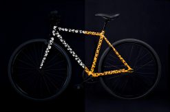 Límmiðar með enduskini í hlébarða mynstri. Festið límmiða á hjól, hjálm eða annað með sléttu/hörðu yfirborði til að sjást betur í myrkri.