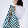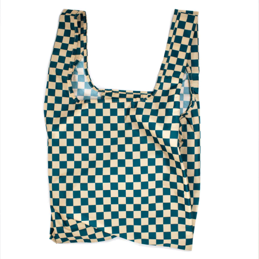 Innkaupapoki CHECKERBOARD TEAL & BEIGE
