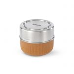 A lightweight 600ml / 20 fl oz Borosilicate glass bowl with a protective and insulating (keep cool) sustainably sourced wood fibre base and Stainless steel lid.