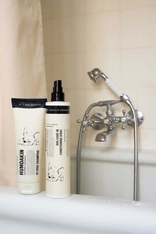 Humdakin Dog Conditioning Spray is a leave-in conditioner for both wet & dry fur, that makes your daily care of your dog easier. It helps to soften, refresh, and detangle the coat, making grooming more manageable and keeping the fur smooth and silky. The spray is perfect for use between washes and scissoring. The spray helps leave your dog’s coat healthy, nourished, and pleasantly refreshed and has a lovely scent of cucumber and macadamia, as you know it from Humdakin’s Dog Shampoo.