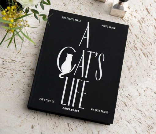 Discover our photo album dedicated to the cherished life of your furry companion. „A Cat’s Life“ features a beautiful black cloth cover with white text. Inside, you’ll find 30 pages of high-quality white photo paper, allowing you to attach your photos easily using our stickers or photo corners, which are bought separately.