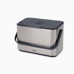 - Storage space beneath the inner bucket to store a pack of Joseph Joseph IW2 custom-fit, compostable bin liners.