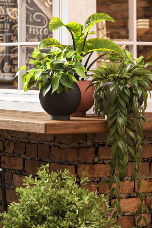 A popular design has been renewed and expanded. GLOBE is now available as a flower pot, suitable for both indoor and outdoor use. Whether you choose the combination with shiny brass rings or the colorful matte surface, they all provide a unique and playful expression. The colors look great individually, but they are even better together, as the tones perfectly complement each other. The different sizes opt for many different plants that can either stand up from the pot or hang down for a more dramatic effect. The pots can be used both indoors and outdoors. Available in different colours and sizes.