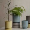 Raw terracotta pots allow roots to breathe, plants to thrive, and the creative spirit to grow, as the Hoff collection invites you to engage in playful combinations of contrasts and colours. The design’s stringency is fulfilled when the natural clay pots are matched with the hand-dipped cylindrical saucers in luscious signature glazes.