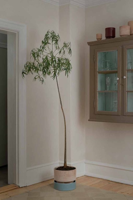Raw terracotta pots allow roots to breathe, plants to thrive, and the creative spirit to grow, as the Hoff collection invites you to engage in playful combinations of contrasts and colours. The design’s stringency is fulfilled when the natural clay pots are matched with the hand-dipped cylindrical saucers in luscious signature glazes.