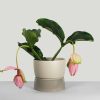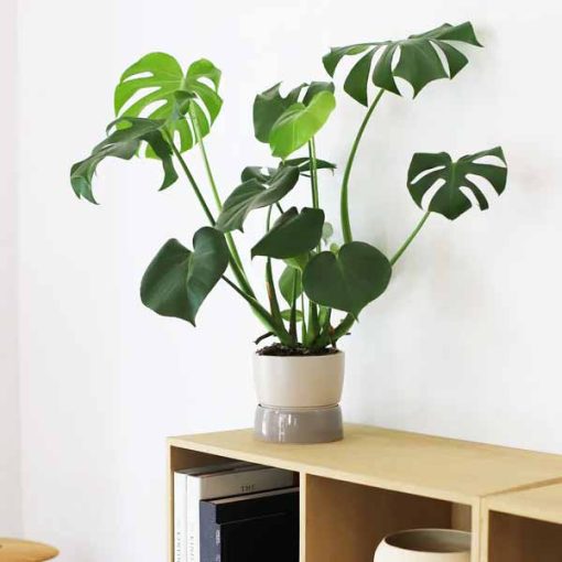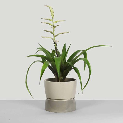 The Two Tone Planter is spacious without appearing large and therefore does not take up much space, which makes it suitable for placement on windowsills and shelves. The shape of the saucer makes the flowerpot stable and suitable for both small and larger plants, which can quietly absorb water through the pot’s drainage hole.