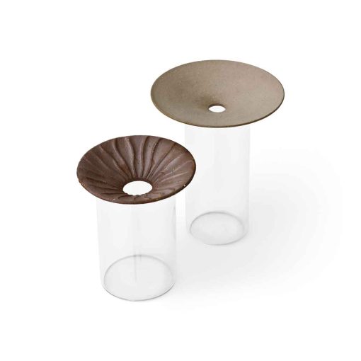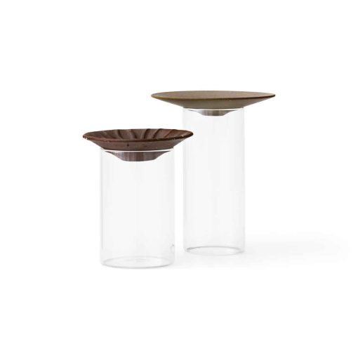 A set of two vases designed to propagate plant cuttings or sprout larger seeds, the Cresco Propagation Vases let nature take centre stage. Easy to use and elegant to look at, the shapely glass vessels allow light to reach the growing roots while the concave, handmade ceramic lid supports the plant as it grows. To use, simply fill the glass vase with water, place the lid on top and let nature work its magic.