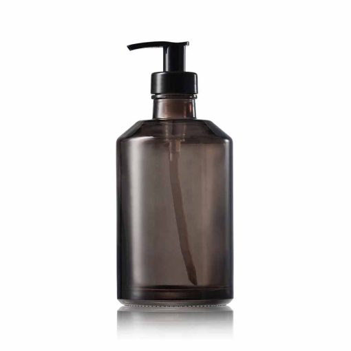 We also offer a version of our unique 340ml smoke grey glass bottle dispenser without print, crafted from sturdy and long-lasting glass featuring a simple, minimalistic Nordic design that seamlessly integrates into any bathroom or kitchen decor.