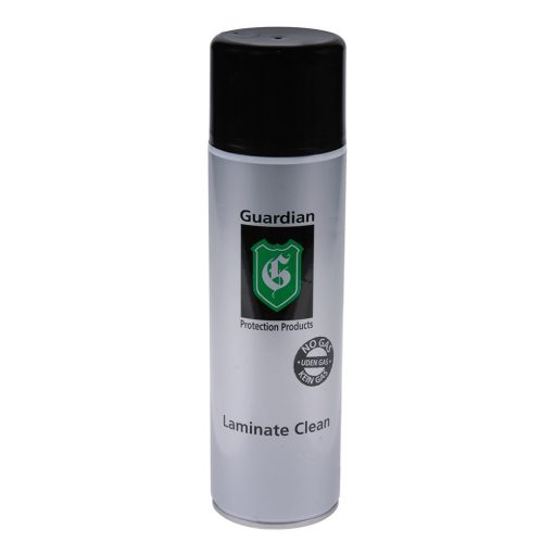 Guardian Laminate Clean is for cleaning and refreshing laminate surfaces (vinyl, plastic and formica). It cleans the surface and adds an invisible protective film.