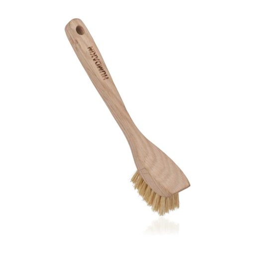 Dish brush in dark oak wood with 100% plant-based tampico bristles. Tampico comes from the Agave lechuguilla plant. The very durable bristles are stiff and retain their shape well. This brush is perfect for daily cleaning with the HUMDAKIN dish soap as well as a more abrasive, thorough dish cleaning after a pot or pan has been soaking in water. The new, long dish brush is practical and stylish. The dish brush comes in two looks: dark wood brush with tampico bristles and a dark wood brush with bristles made from horse hair! Both types are made sustainably and you can choose which brush is right for you! Oak is heavy, hard-wearing and highly durable. The wood is a dark grey-brown with a clearly visible grain pattern, making it a very beautiful wood species. Tip: Tip: Have an organizing bucket or other holder by your sink so you can stylishly organize your dish brush and dish soap. Always let the brushes dry with the bristles facing upwards.