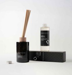 The new Skandinavisk diffuser collection blends Scandinavian fragrance stories with renewably farmed vegetable oils inside a painted glass vase that is designed to be refilled for up to 3 additional months of gentle and responsible room fragrance.