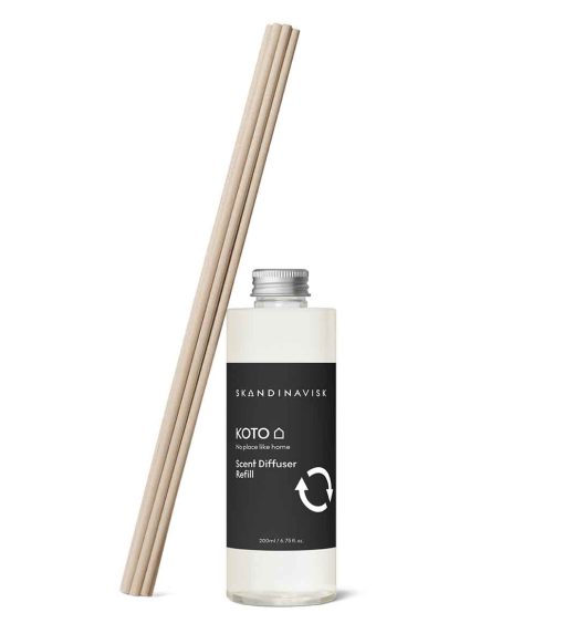 Just pour the refill carefully into the Skandinavisk glass, replace the reeds, then rinse and recycle the empty refill bottle. The FSC-certified packaging card is printed using natural colour dyes and can also be recycled.