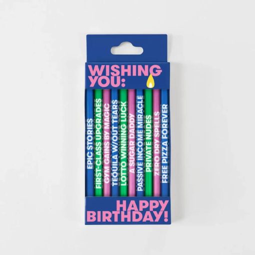 Sometimes wishes DO come true, so it’s best to be specific when blowing out the birthday candles. Our new Cheeky Edition of Wishing You: Birthday Candles helps with some inspiration – and gets 10 wishes sent in one blow to the higher powers in charge of wish fulfillment.