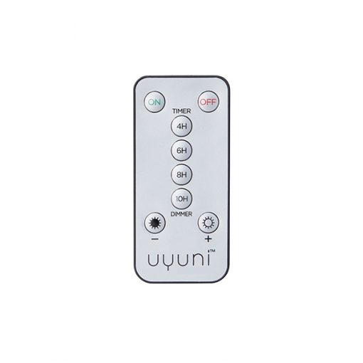 Use the Uyuni Remote control with your Uyuni candles to control the timer and dimmer of your remote-ready candles.