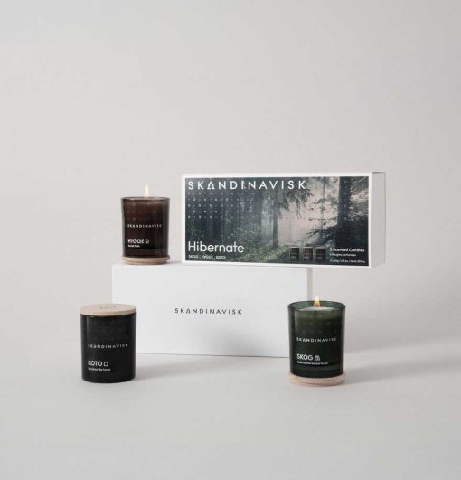 Hibernate with us in the forest, in the home, and in cosy bliss with this new giftset containing 3 mini scented candles of Swedish rapeseed wax and FSC-certified beechwood lids. The new, improved FSC-certified box is designed to be reused after the candles have been removed.