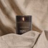 A perfume and Swedish rapeseed wax blend in painted glass with a pure cotton wick and engraved beechwood lid.