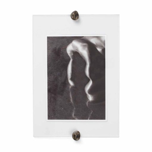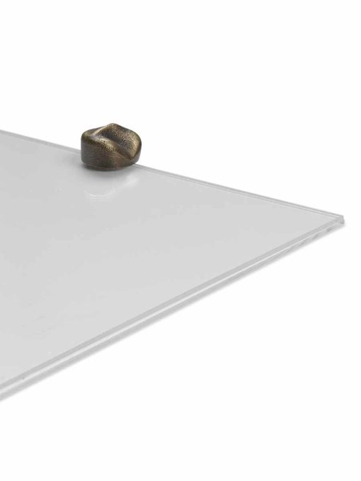 Elevate your space with a touch of sophistication and personal flair using the Gravel Picture Frame. This exquisite, modern frame comprises two sheets of acrylic, seamlessly connected by sculptural, cast brass brackets resembling small pieces of gravel. To display your chosen picture, effortlessly affix the two brass brackets onto the wall. Insert the picture between the two acrylic sheets, and then secure it by placing the cast brass caps onto the brackets. Your picture is now elegantly and securely framed.